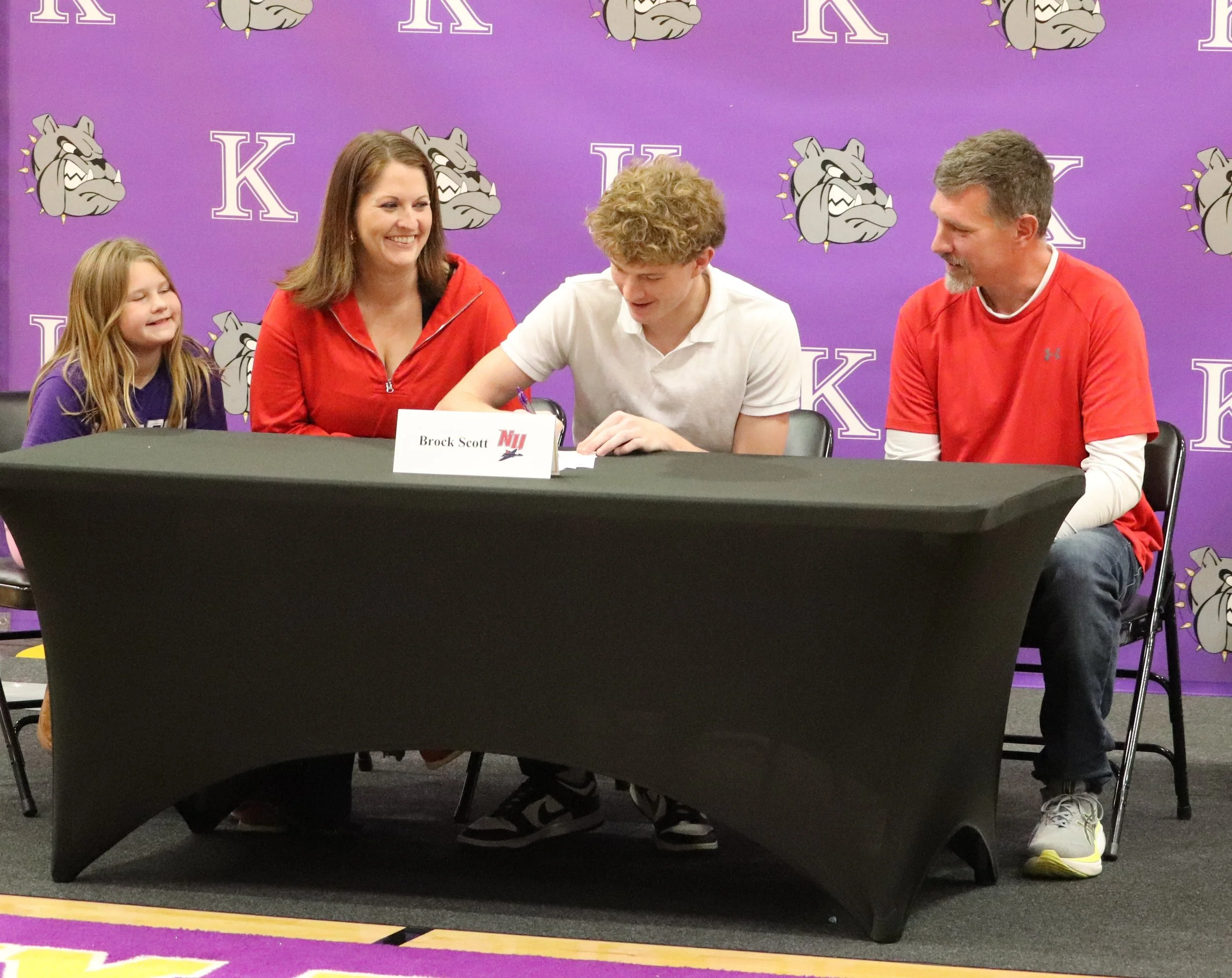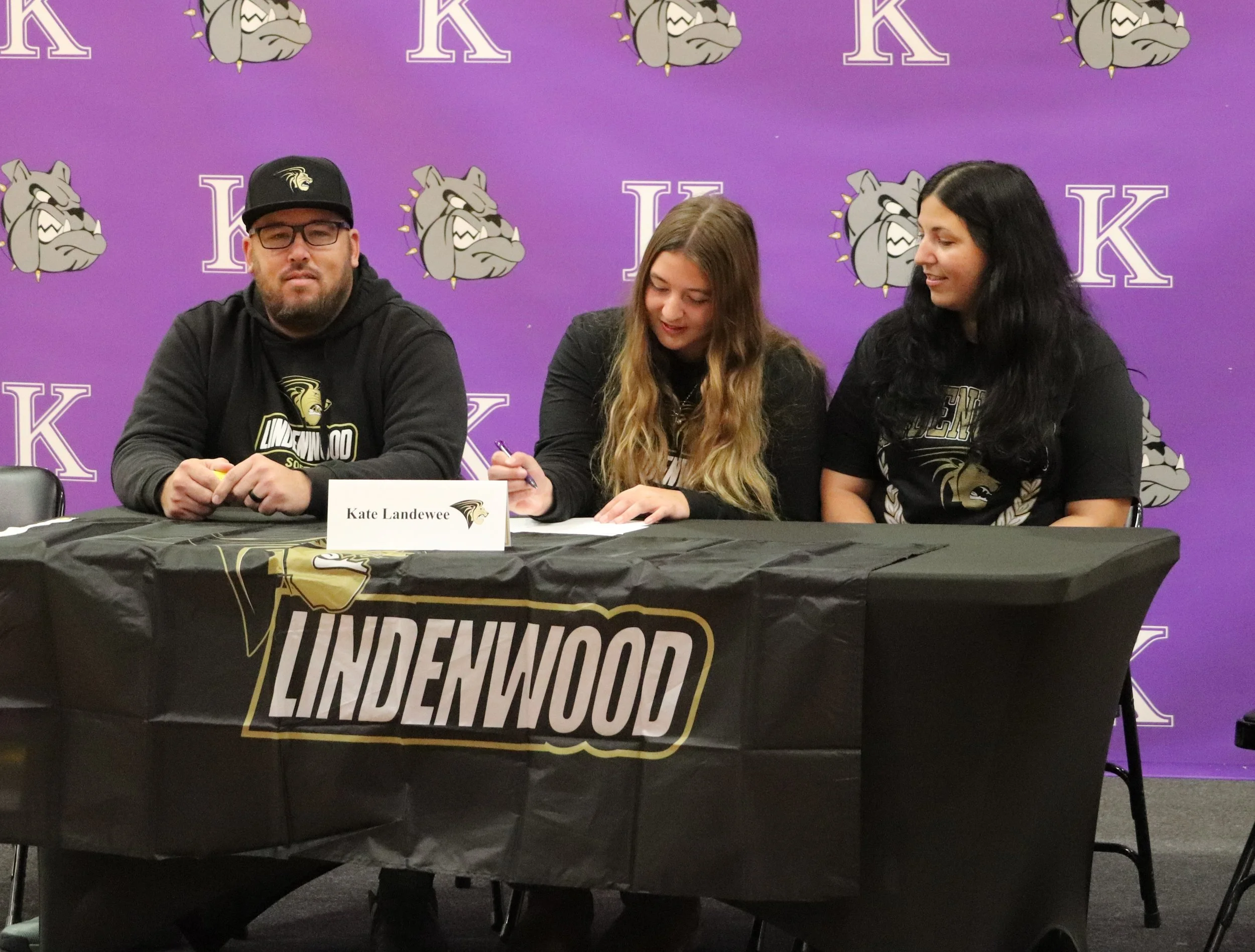 /Seven Kearney High School Student Athletes were celebrated on Signing Day, November 20, 2025, at Kearney High School. Athletes met with visitors and showed off their memories and accomplishments in the Bulldog Arena lobby. Coaches and teachers introduced the athletes before they put pen to paper signing their letters of intent to compete in various sports at the college level.