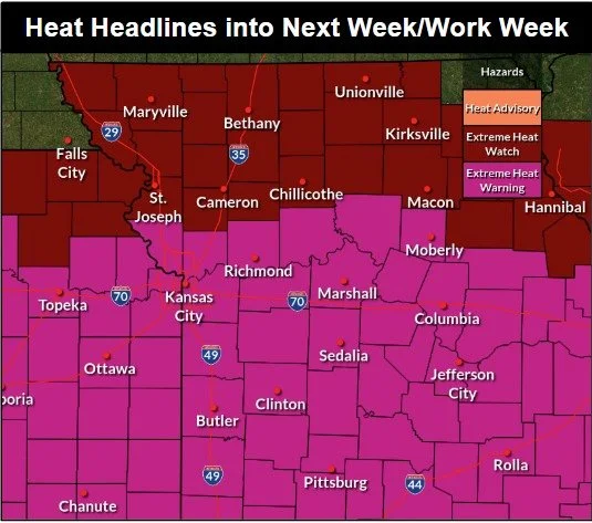 /The National Weather Service has issued an Extreme Heat Warning for Kearney and the surrounding areas, in effect from noon Saturday, July 19, through 7 pm Wednesday, July 23.