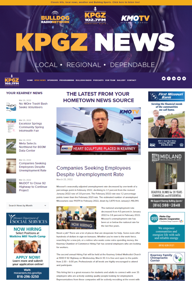 102.7FM KPGZ is Kearney’s hometown radio—local news, Bulldog sports, community events, and real music.